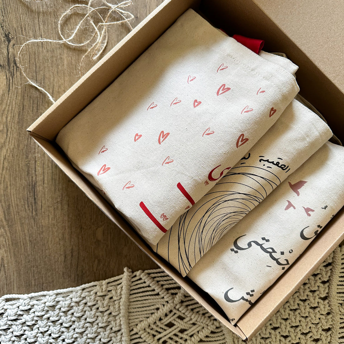 صندوق فساحة يجمع بين ٣ من أشهر تصاميمنا: "دوّامة"، "حب"، و"حكيم" — كلها مصنوعة من...