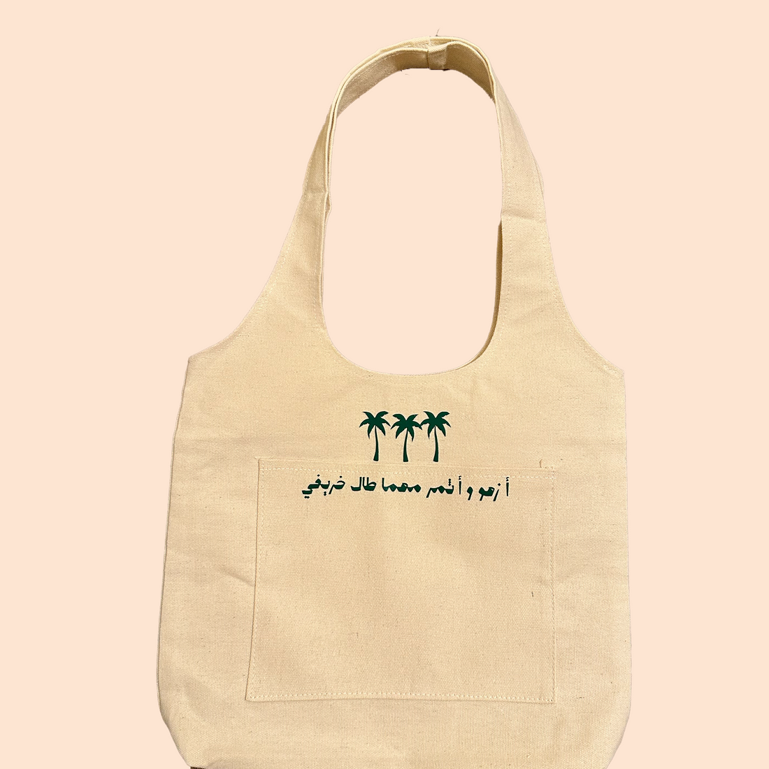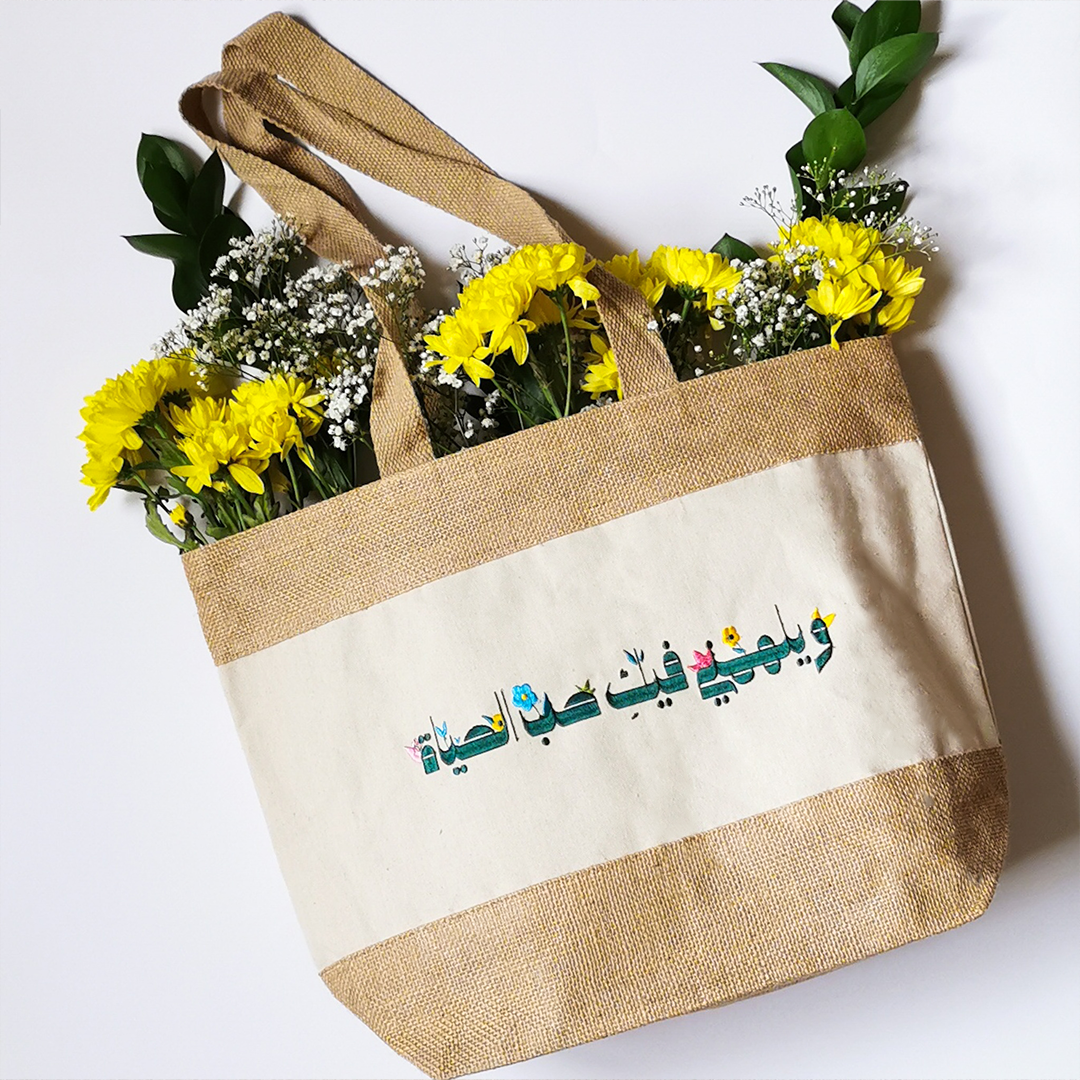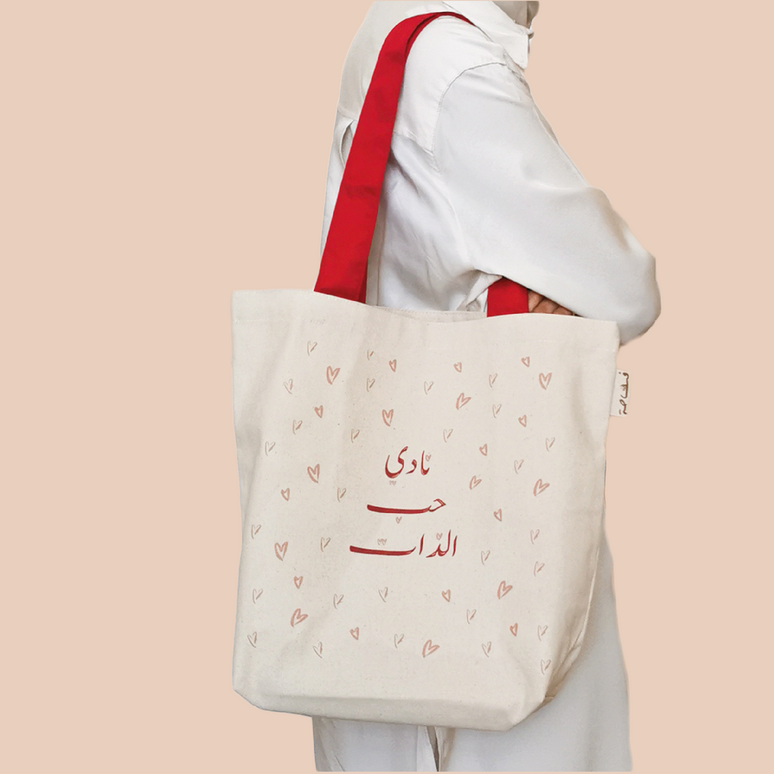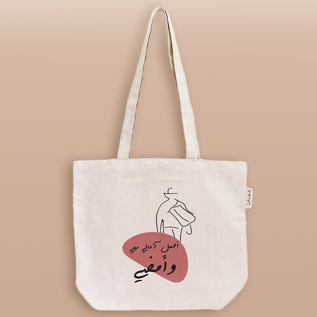 عن التصميم  ”أحمل آمالي معي وأمضي“  صُمّمت خصيصاً لتُعبّر عن الطموحين والمفعمين بالأمل.    المواصفات   اللون: البيج الطبيعي  الحجم: ٤٠ x ٣٥ سم  نوع القماش: الكانفاس القطني    المميزات   جيب داخلي  صديقة للبيئة  مناسبة للاستعمال اليومي والدوام الرسمي ...