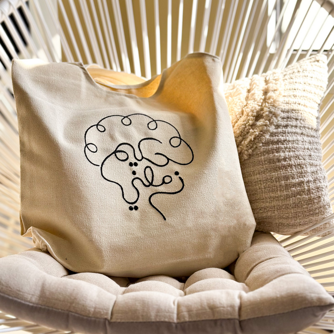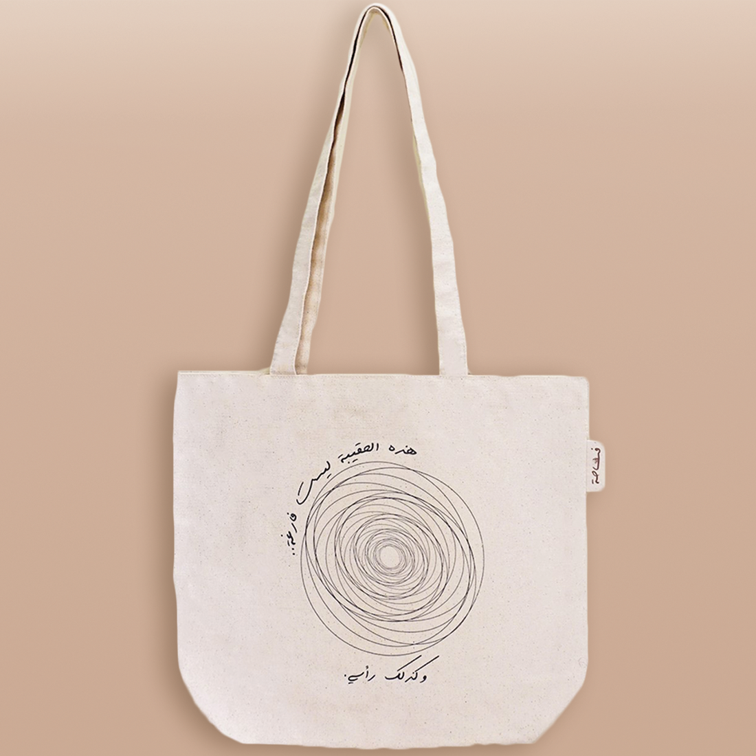 عن التصميم  ”هذه الحقيبة ليست فارغة.. وكذلك رأسي“  صُممت لتحاكي ما يجول في رأس المفكّرين.  دوامات من الأفكار والإبداع المطلق!   المواصفات   اللون: البيج الطبيعي  الحجم: ٤٠ x ٣٥ سم  نوع القماش: الكانفاس القطني ...
