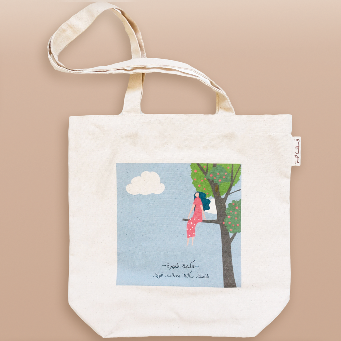 عن التصميم  ”حكمة شجرة: شامخة. ساكنة. معطاءة. قوية.“  لكل من تنطبق عليها الحكمة.     المواصفات   اللون: البيج الطبيعي  الحجم: ٣٥ x ٣٥ سم  نوع القماش: الكانفاس القطني    المميزات  جيب داخلي  زر مغناطيسي ...