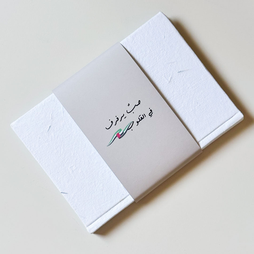الغلاف يحمل تصميم برقع مزيّن بعبارة "حبٌ يرفرف في القلوب"، ليكون أكثر من مجرد دفتر – هو رسالة تقدير وامتنان.