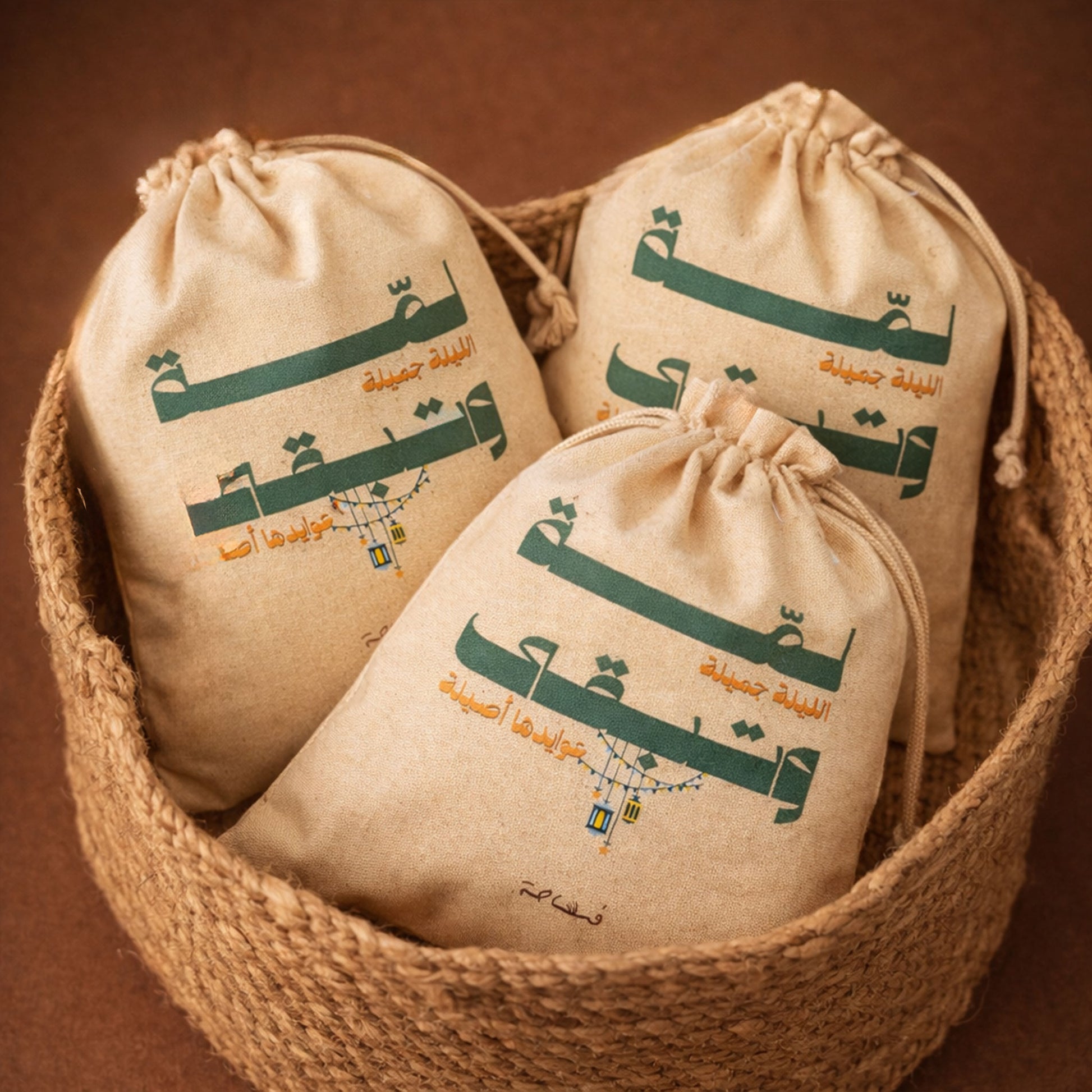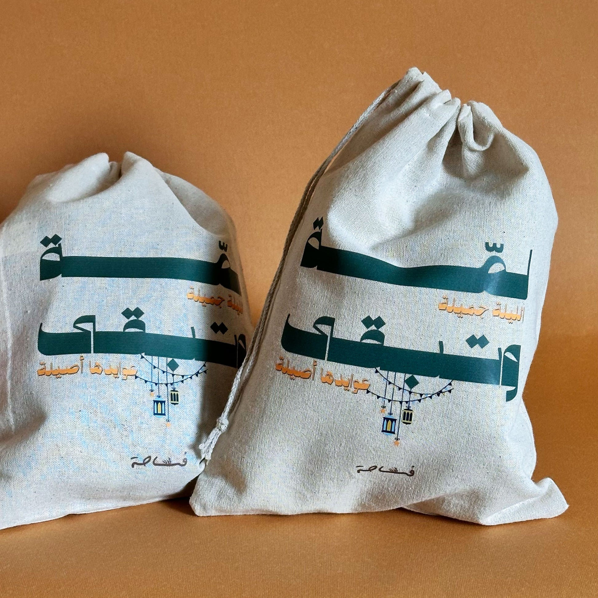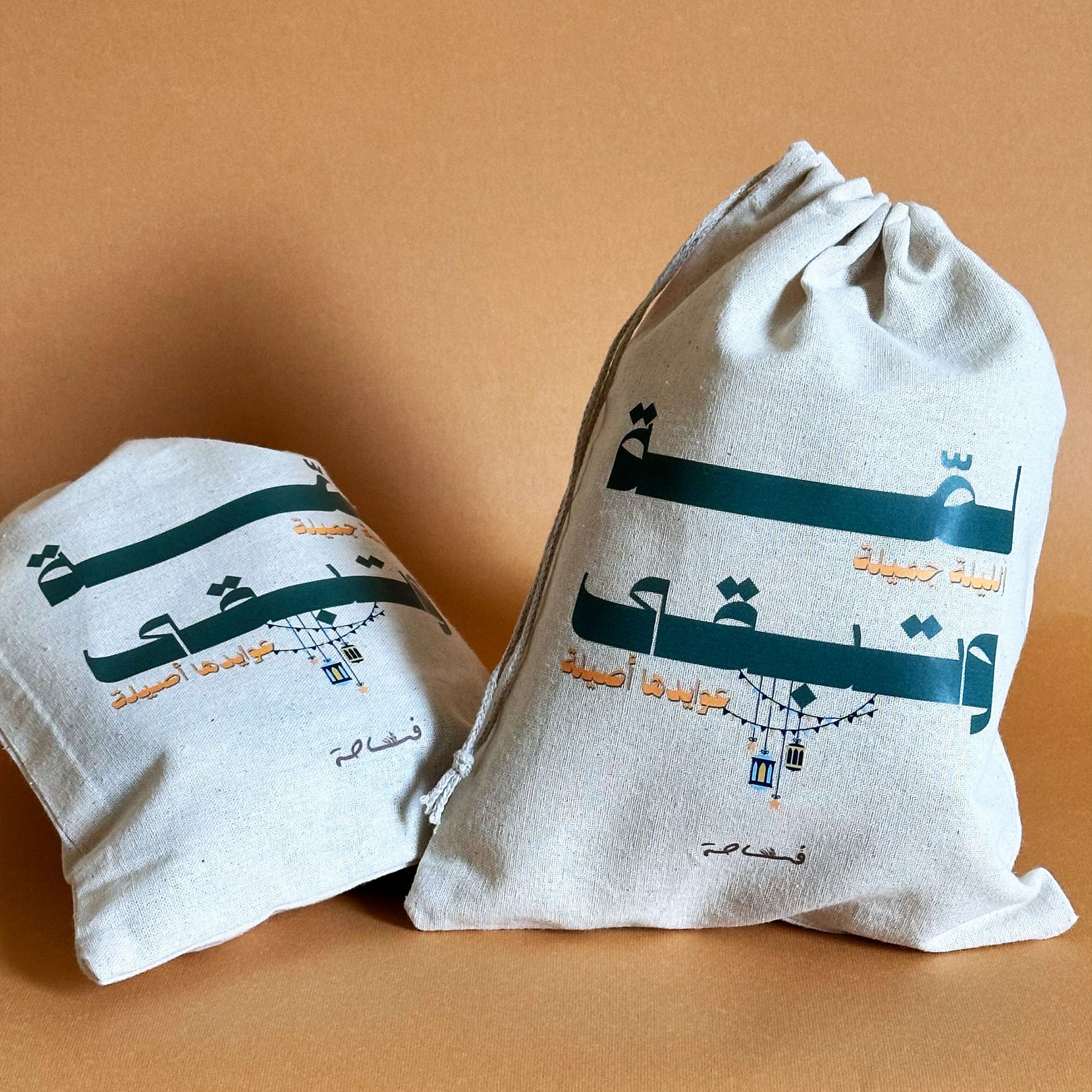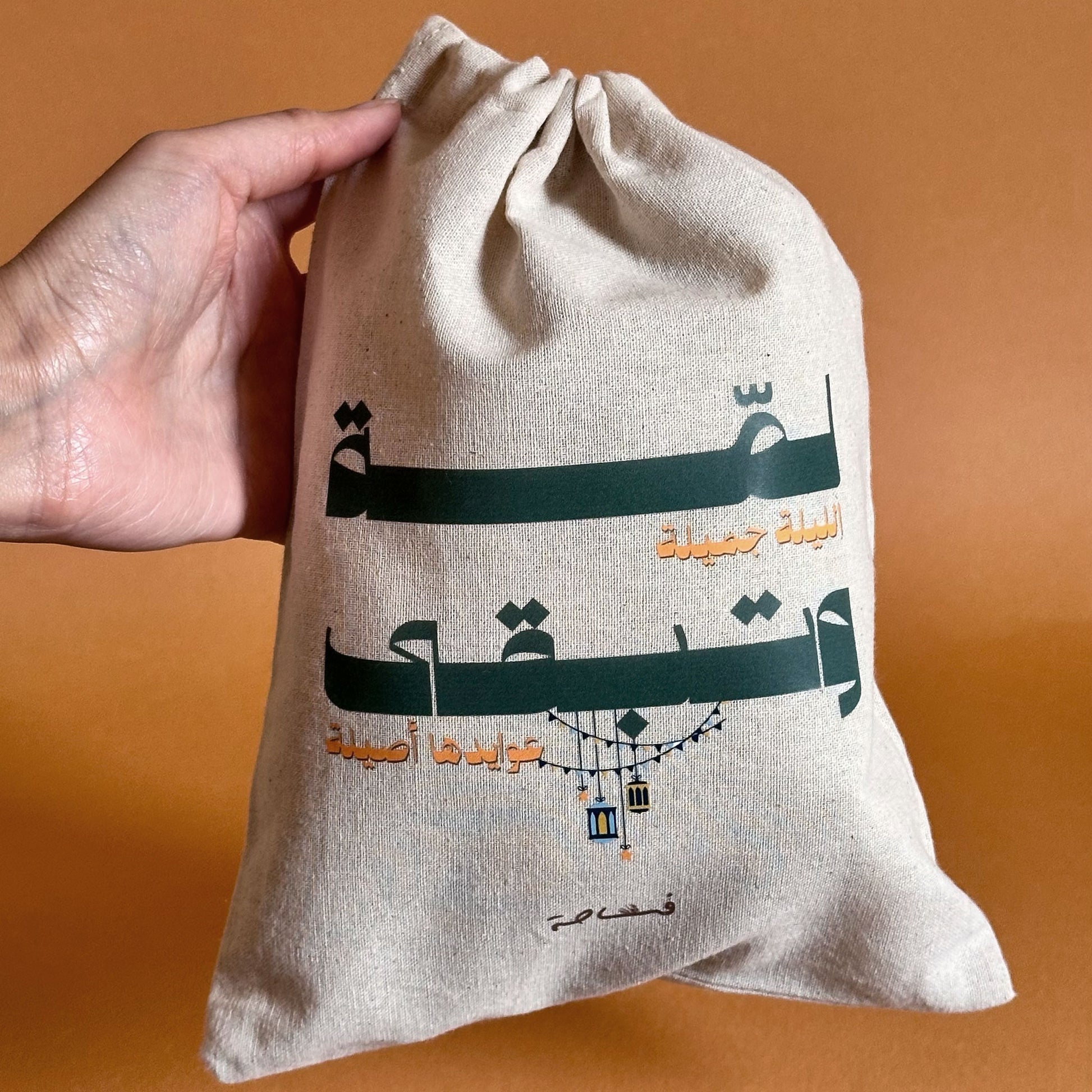 هذه الحقيبة القطنية صُممت لتكون رفيقة اللمة، بسيطة، دافئة، وقابلة لإعادة الاستخدام عامًا بعد عام.