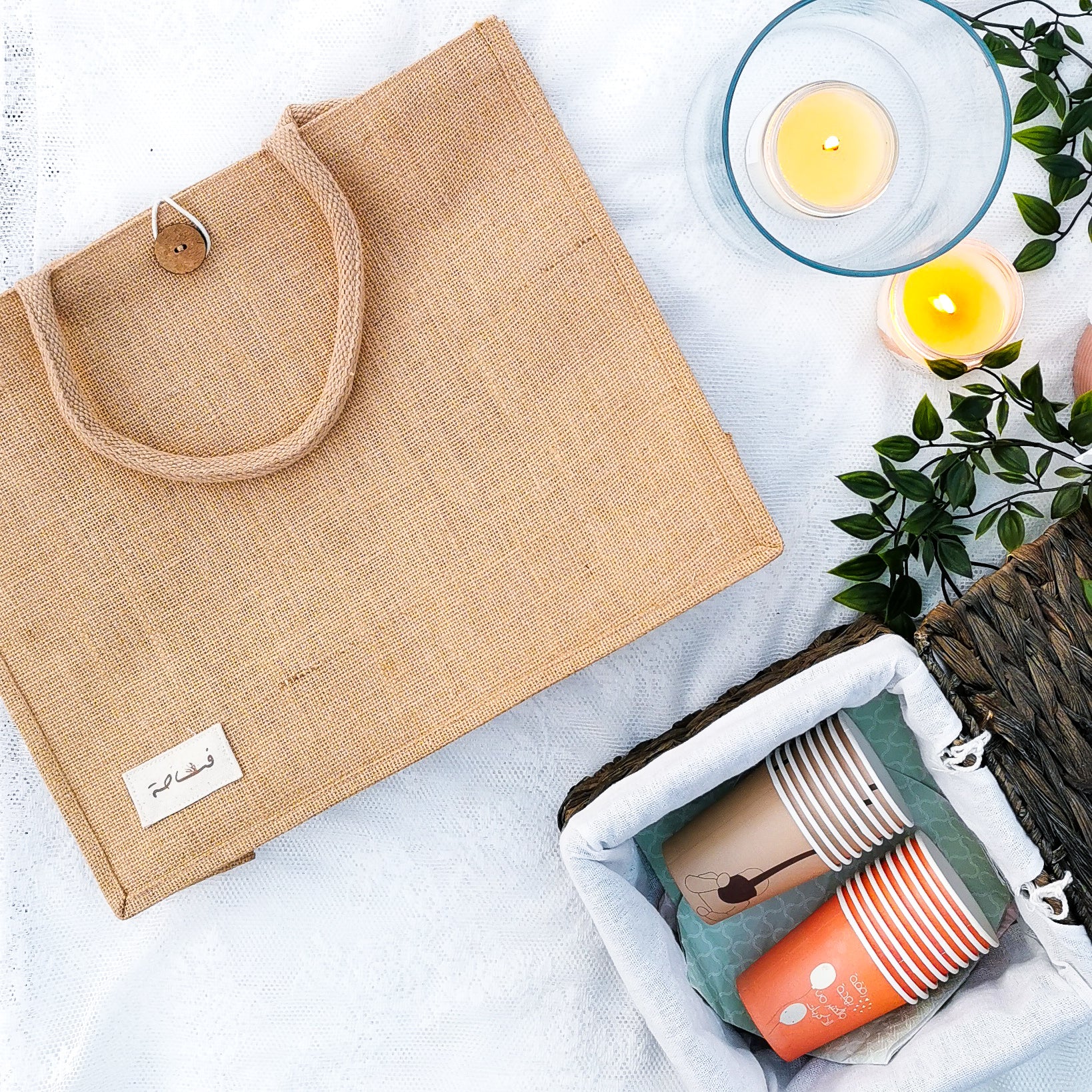 مجموعة صديقة للبيئة مكونة من حقيبة، صندوق وأكواب. تجعل نزهتك أكثر سهولة، جمالاً ومتعة!