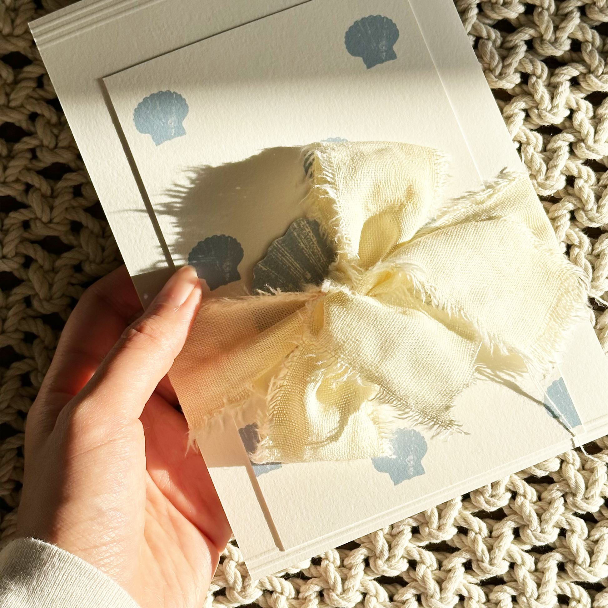 - بطاقة معايدة أنيقة مكونة من بطاقتين تغلّفهم صدفة ورقية